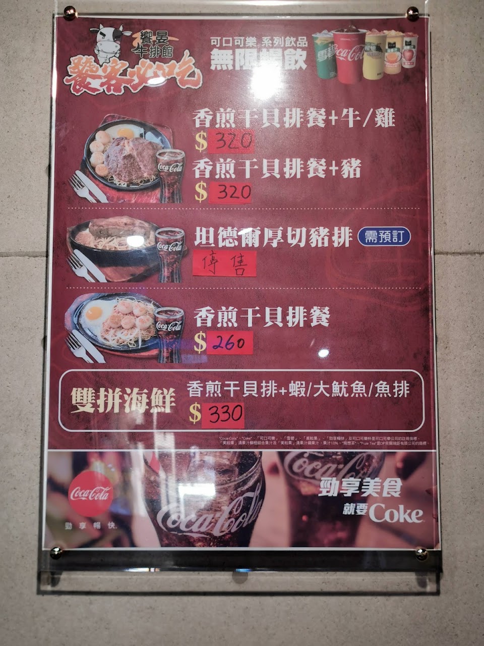冰品 零食瓶 餐具 湯品, 香煎干貝排餐 牛, 牛排 雞腿排 附 餐包