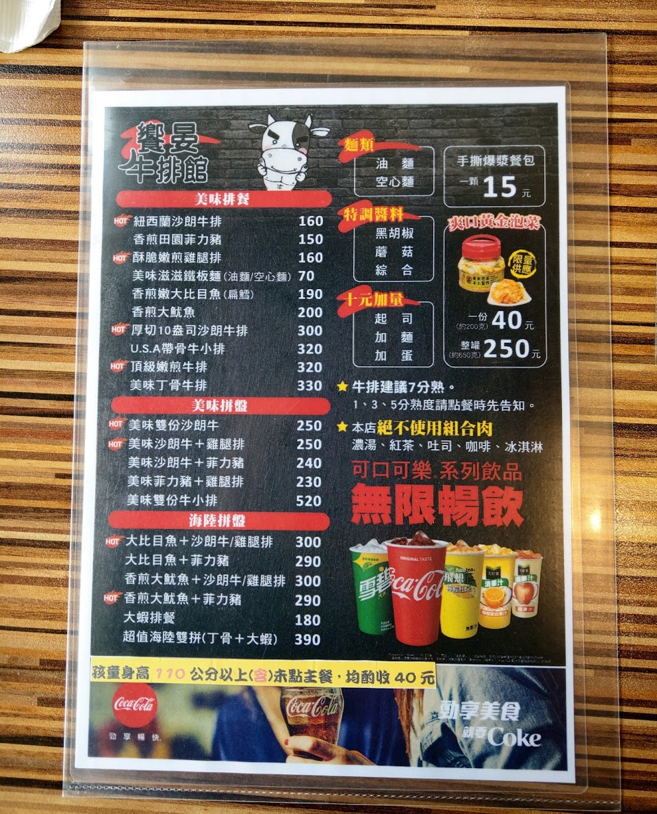 2024最新在地推薦餐廳的菜單_饗晏牛排館的菜單、圖片