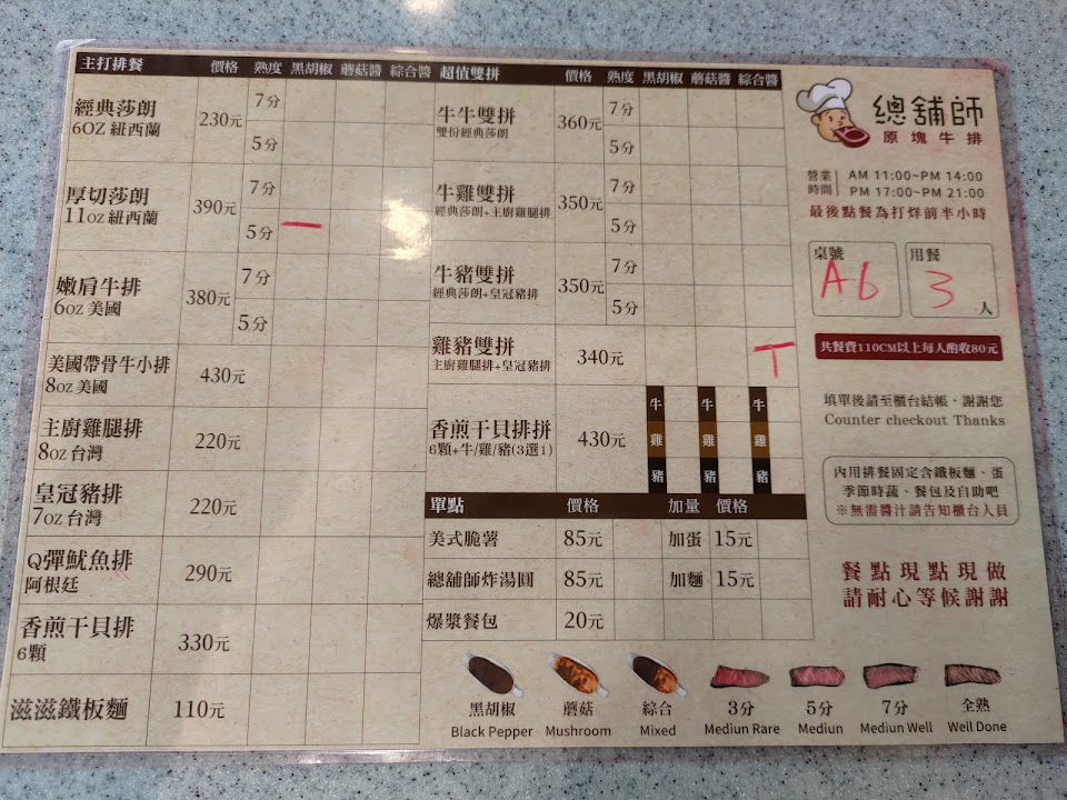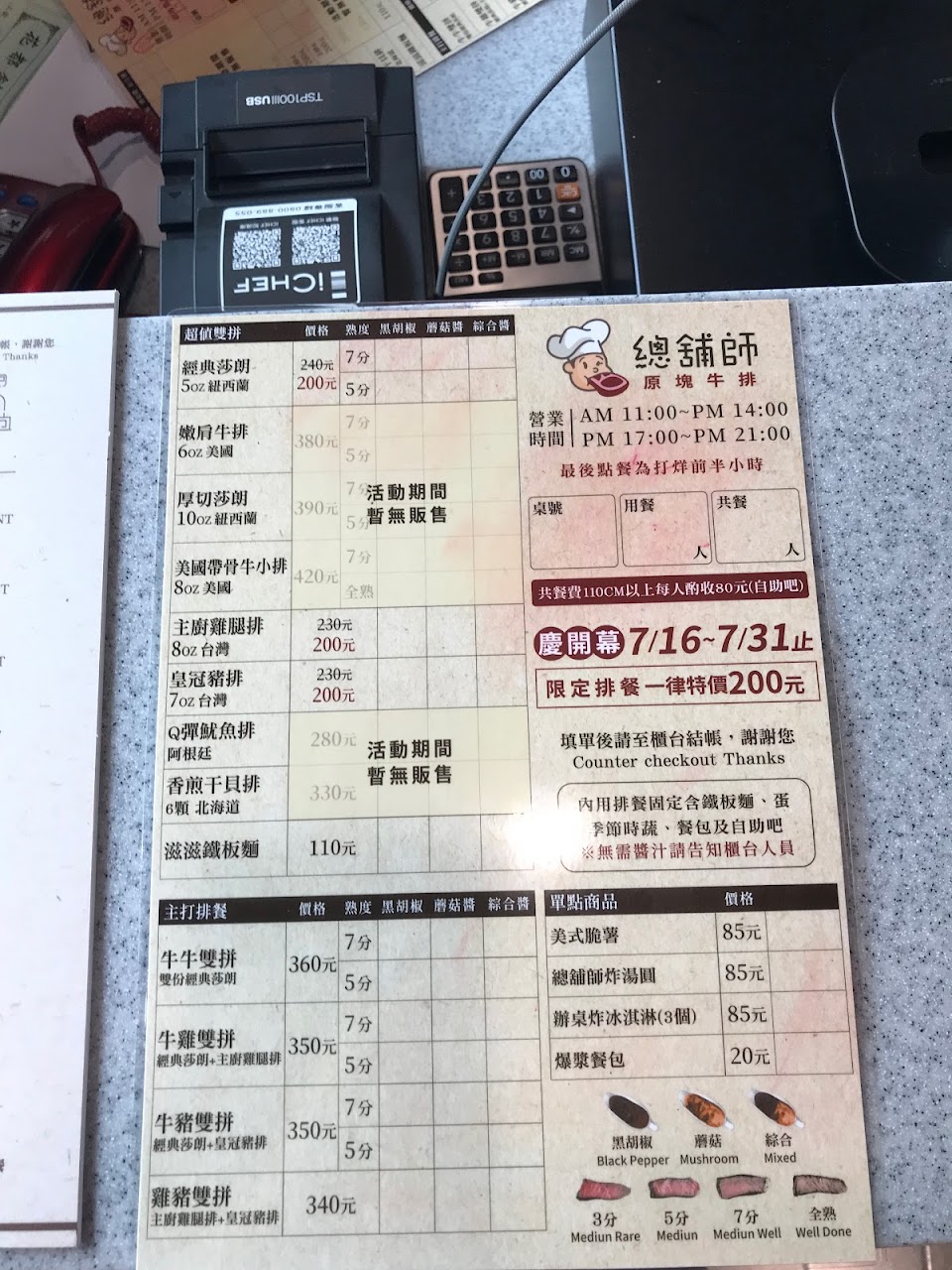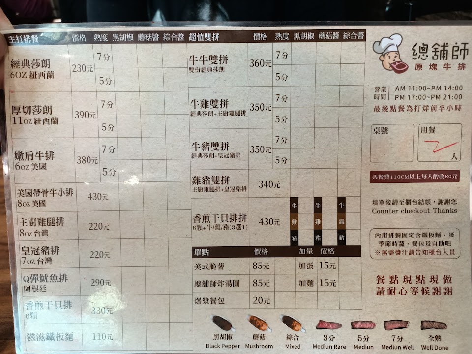 2024最新在地推薦餐廳的菜單_總舖師原塊牛排的菜單、圖片