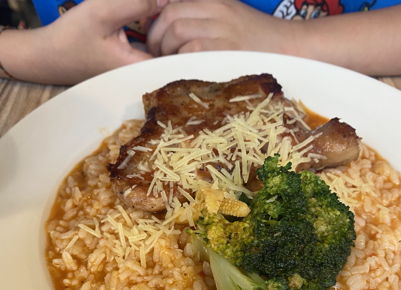 環境乾淨但Cp值極低 今天外帶兩份餐點 1.日式咖喱豬排199:豬排好吃但沒切,咖喱味道極淡料少,便利商店的完勝。 2.奶油嫩雞墩飯2×9:雞肉嫩但就是像賣場販售醃製好的肉,配料少燉飯味道也普普,便利商店還是完勝。
