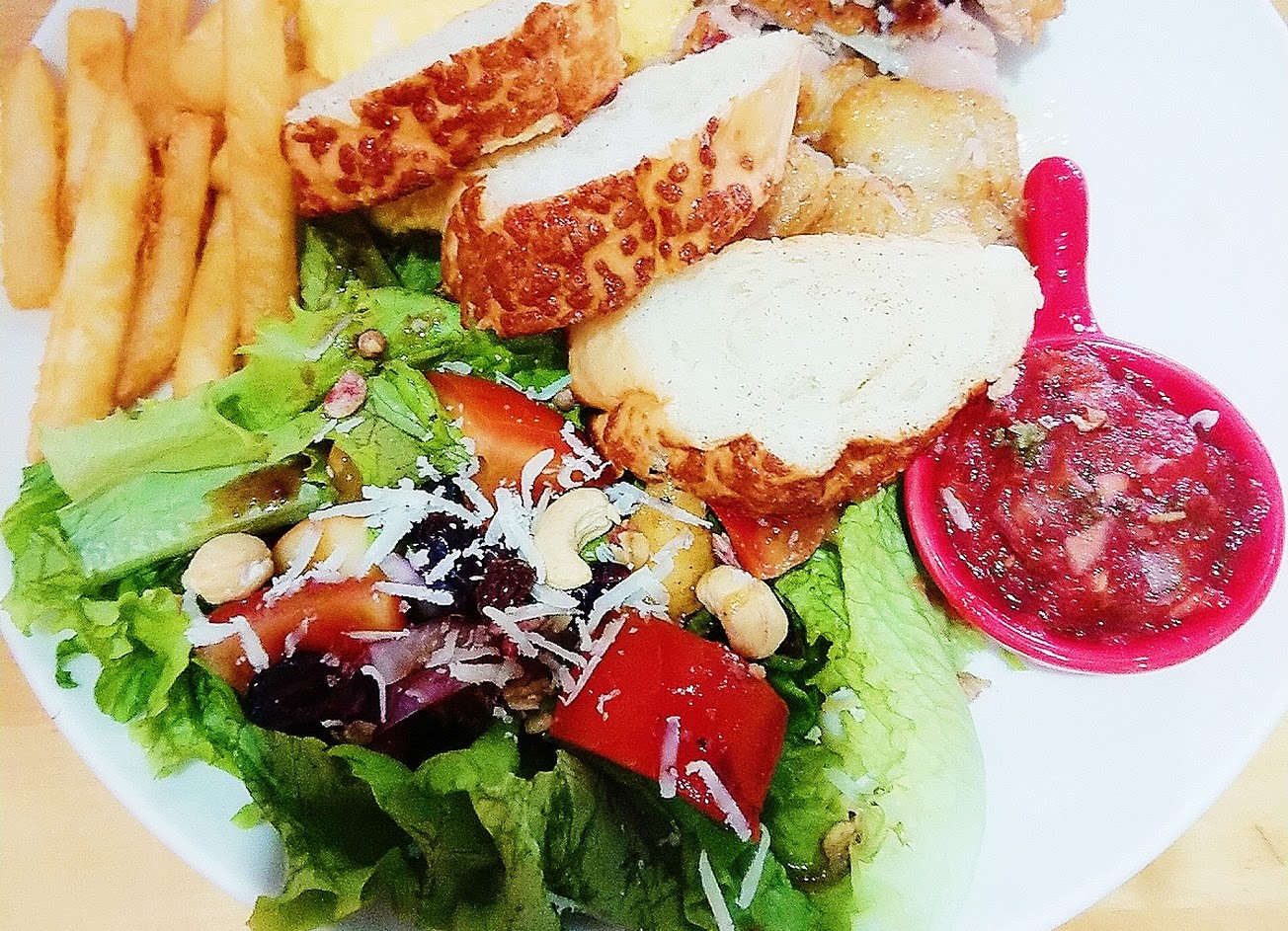 Gary 沙拉,菜很鮮嫩,雞肉煎的挺酥,油醋跟莎莎醬口味相對應,很讚
