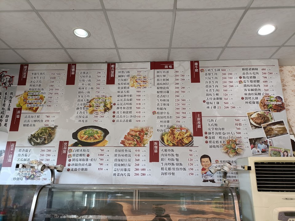 今天點的10道菜真的蠻不錯吃的 服務 內用 餐點類型 午餐 餐點:5 服務:4 氣氛:4 建議的餐點 炒青菜, 醋溜中卷, 三杯中卷, 白鯧米粉湯 停車位 很多停車位 附近的停車場 免費停車場