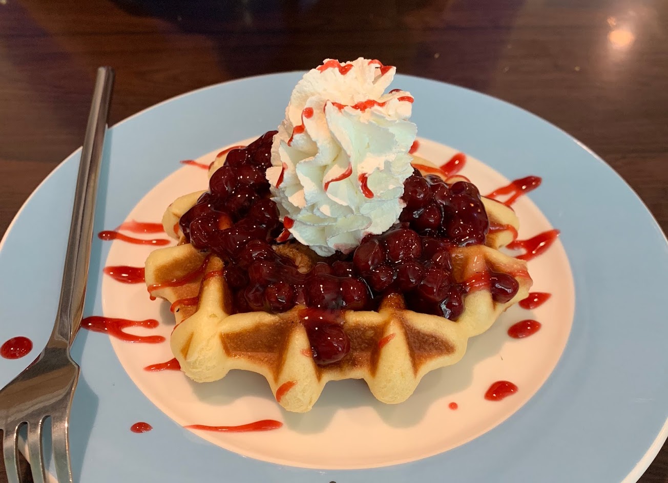3.鬆餅口感扎實、珍珠糖放很多⋯配偏酸果醬還行