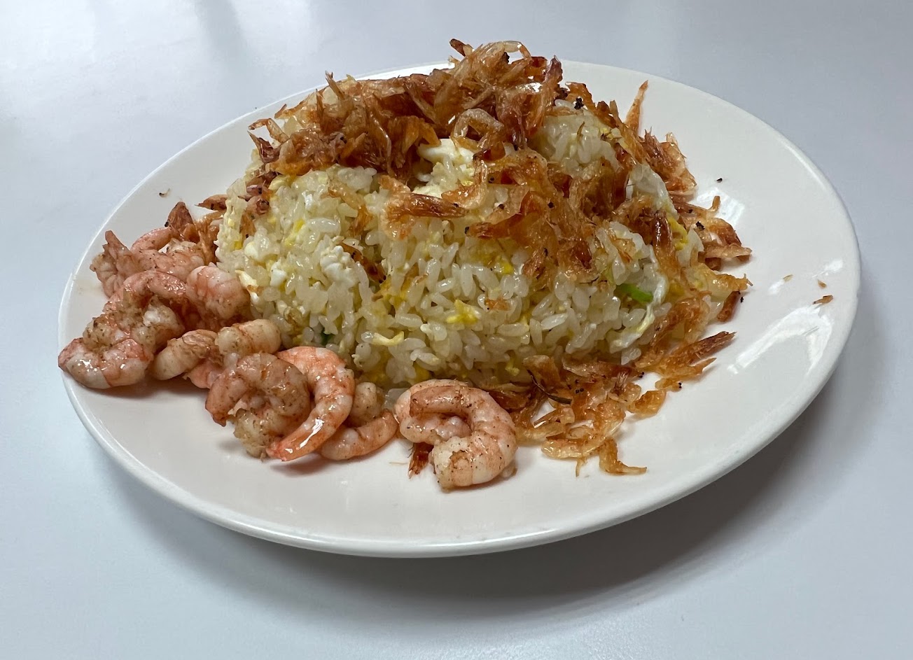 滿失望的!就是蛋炒飯旁邊放幾隻蝦子上面撒櫻花蝦這樣而已,蝦子跟飯是分開炒的,喔這份炒飯旁邊的蝦子居然還是冷的。特別過來吃,感到非常的失望。