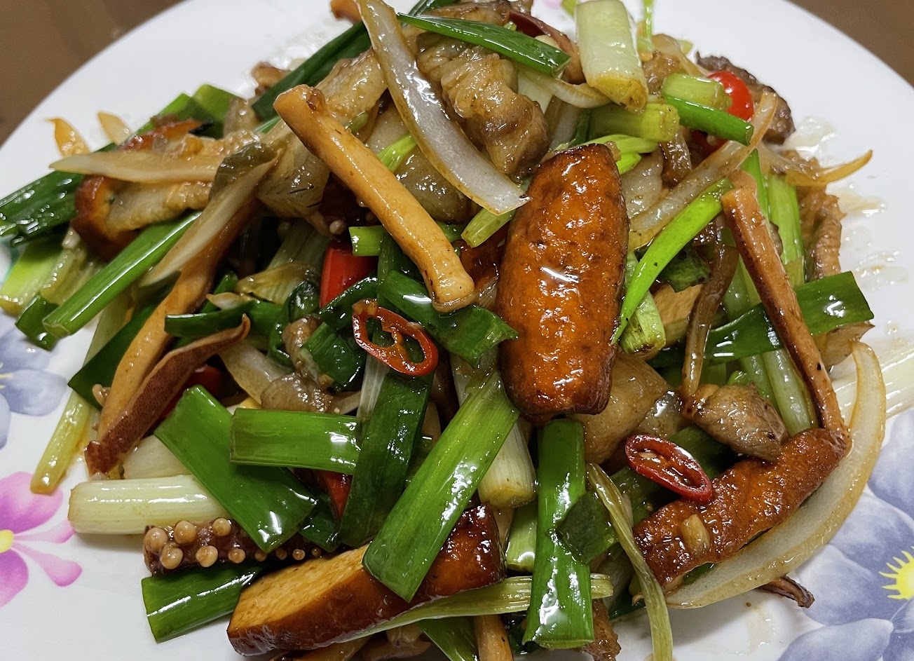 蒜苗鯊魚 韭黃牛肉 芹菜炒花枝 蚵仔煎蛋