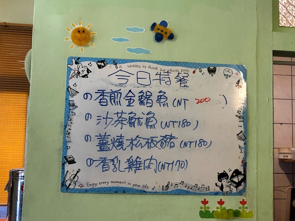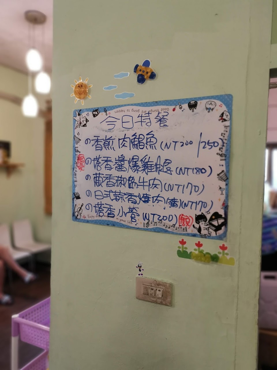 平價台式簡餐,菜單款式多,還有義大利麵系列,推午仔魚、三杯辣子雞、黑胡椒牛肉、三杯菇,搭配每日不同三種配菜好吃又下飯,魚炸的酥脆無腥味,飲料有兩款好喝無限暢飲? …