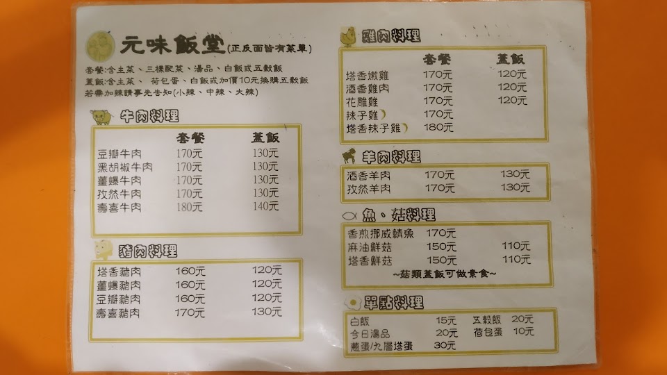 2024最新在地推薦餐廳的菜單_元味食堂的菜單、圖片