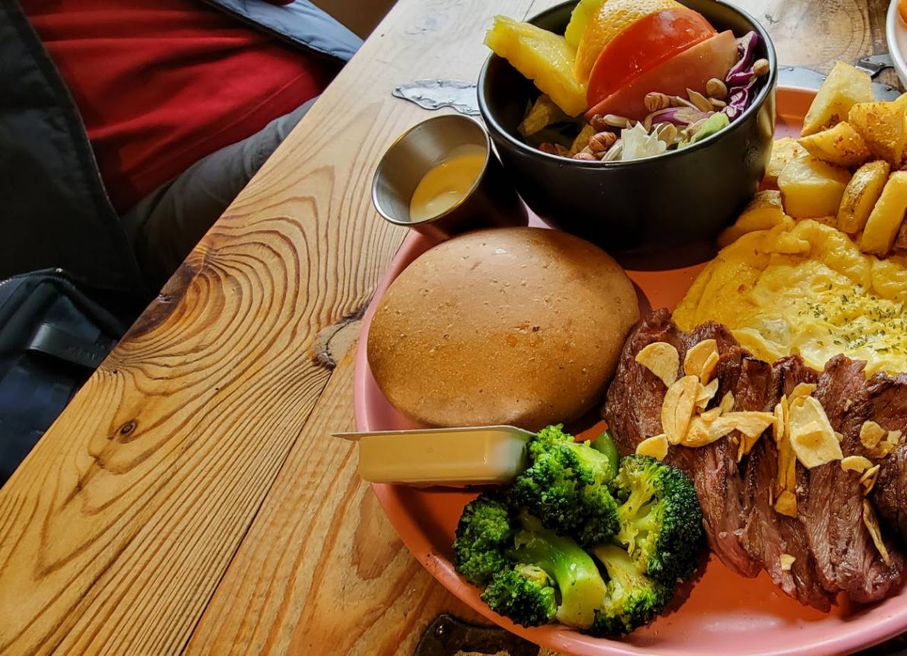 牛肉和蒜片搭起來很對味,蒜片表現意外的很亮眼,很好吃?煎鮭魚就中規中矩了,但給兩片誠意滿滿啊! 服務 內用 餐點類型 早午餐 平均每人消費金額 $200-400