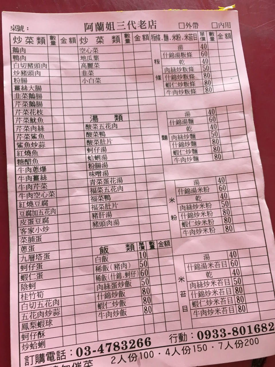 點了什錦炒板條跟炒麵都很油,裡面的豬肝是苦的…餐點也沒有價目表…