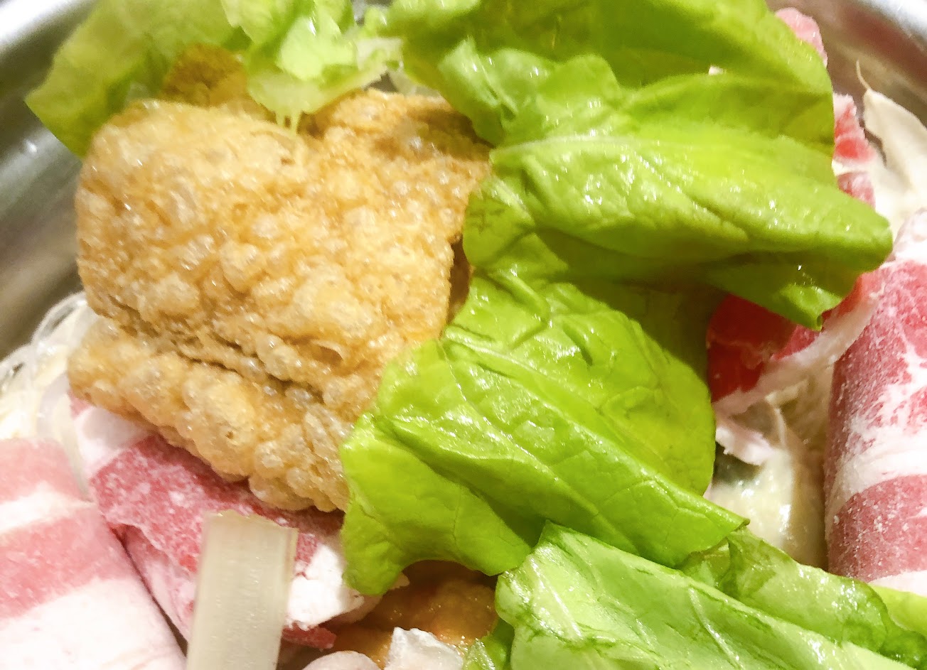 這就是你們的酸菜白肉鍋,完全沒有酸菜的味道都是高麗菜的味道,這還是拿來滾過的樣子,送來的時候高麗菜像是剛丟下去過沒多久就熄火了