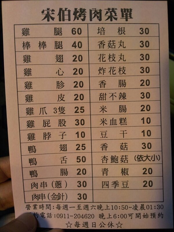 2024最新在地推薦餐廳的菜單_宋伯烤肉的菜單、圖片