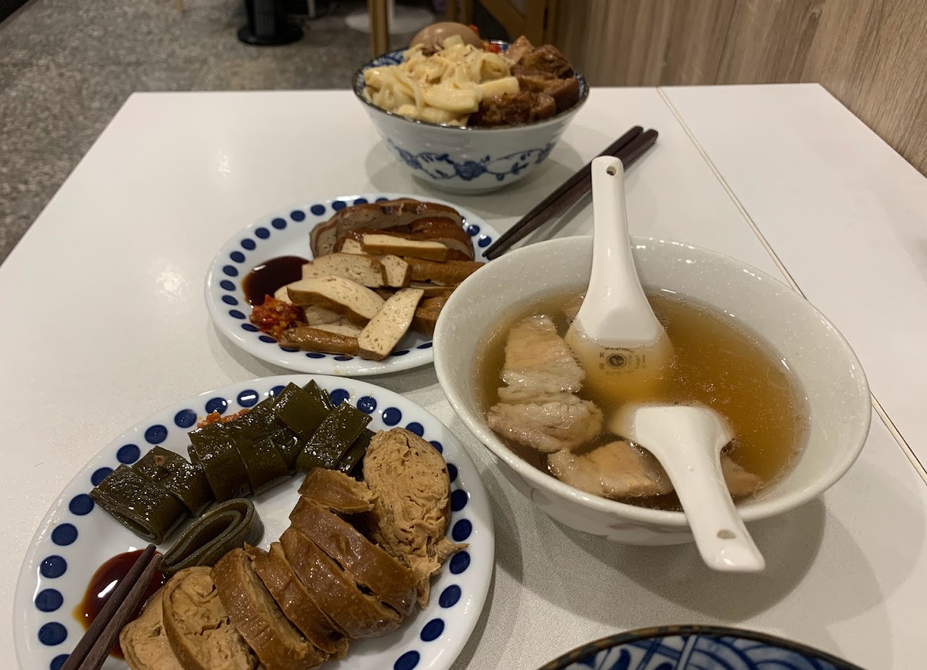 東西很簡單,味道有種單純的美好,豆包好吃,控肉有點太硬不是軟嫩的那種,餐具很講究都是瓷器的很讚