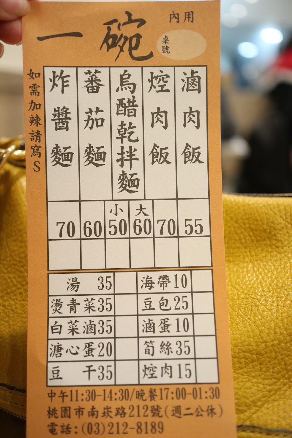 今天點了炸醬麵60 烏醋乾拌麵小的50 加辣椒很對胃 滷肉飯60 份量蠻大的 有酸菜跟半個糖心蛋 香菇雞湯40 有提供兒童餐具 店員服務很親切 店家招牌不易發現 值得回味的小麵店 期待下次再來用餐 在南崁街上有停車格但不易停車喔