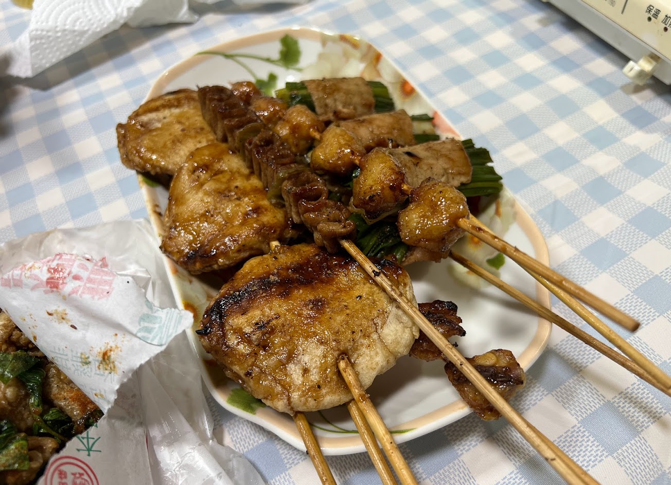 原本的雞皮很酥脆,但現在感覺沒有以往的水準,容易軟、油;甜不辣跟甘梅地瓜還算不錯的炸物;個人覺得燒烤類還好,比較推薦炸物