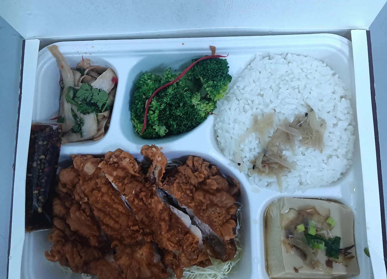 炸雞, 椒麻豬排飯, 配菜×2, 蒸蛋 配菜