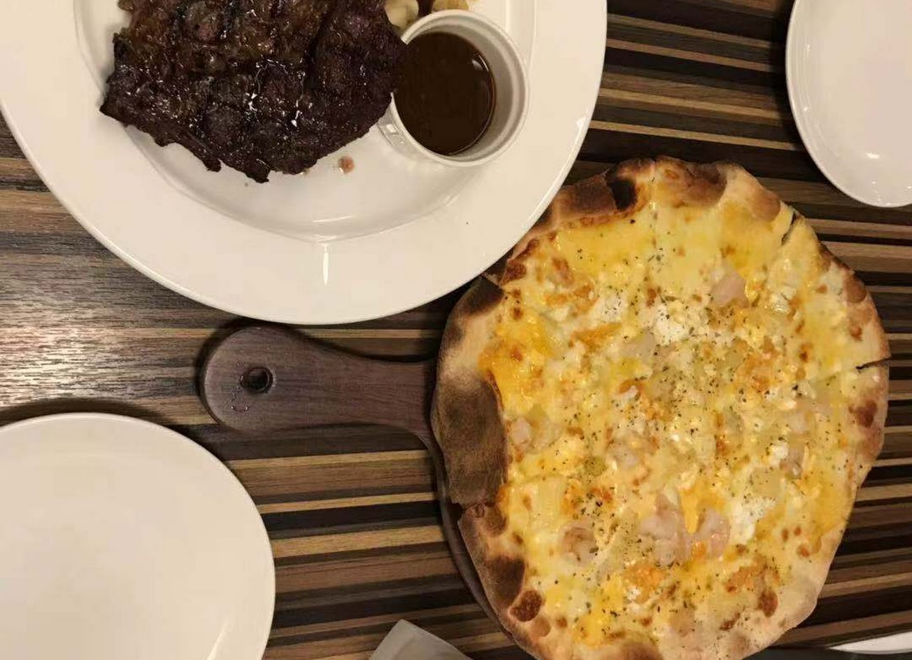 Pizza很有特色,牛排口感也很好吃,如果不限定只有平日中午才賣義大利麵就更棒了!