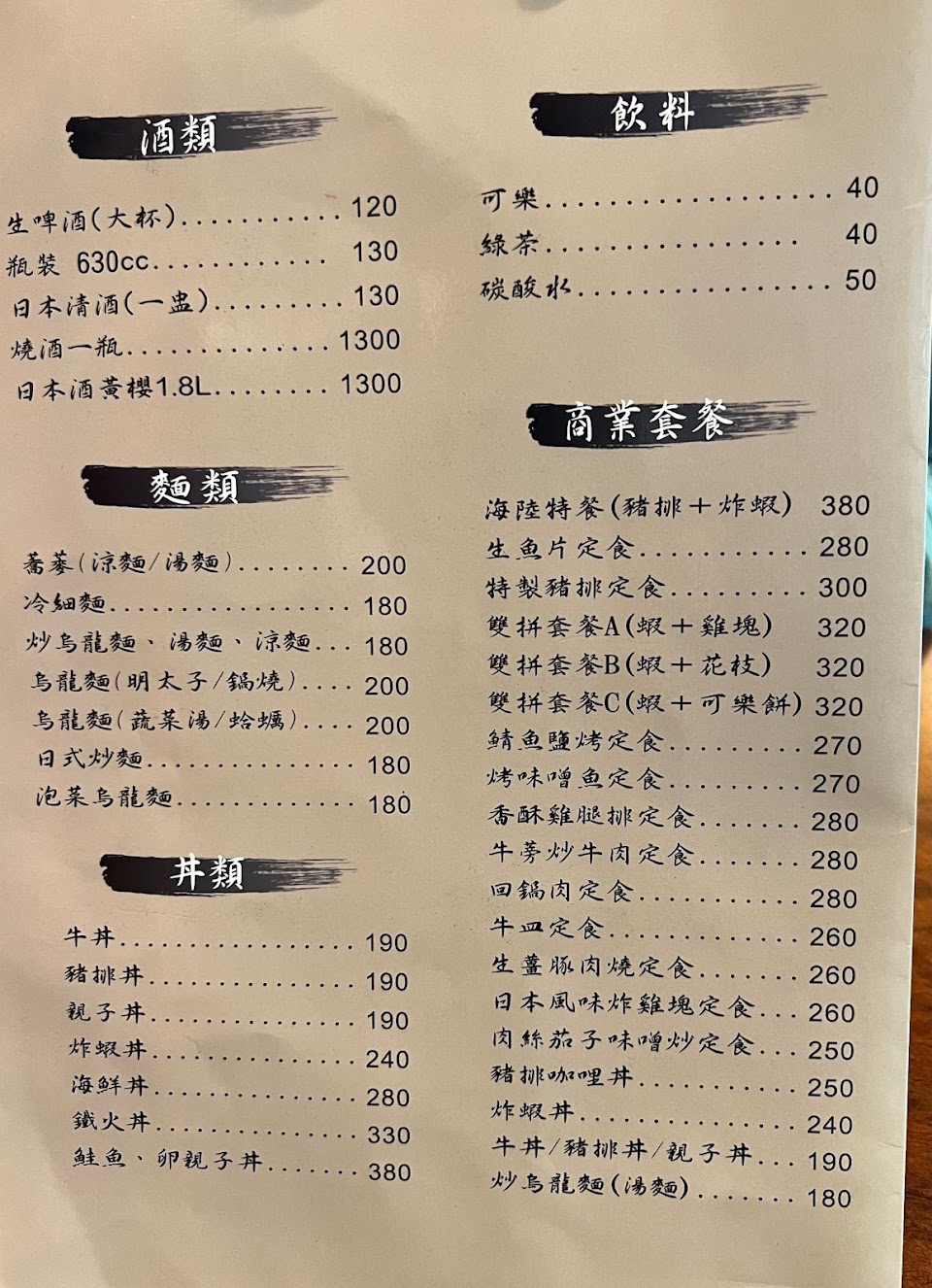 是日本主廚在料理的,闆娘服務的也很好,家庭式居酒屋的親切. 食物也是偏家常料理,價位是合理跟划算的. 可惜位置偏少些. 應該有很多回訪的常客.