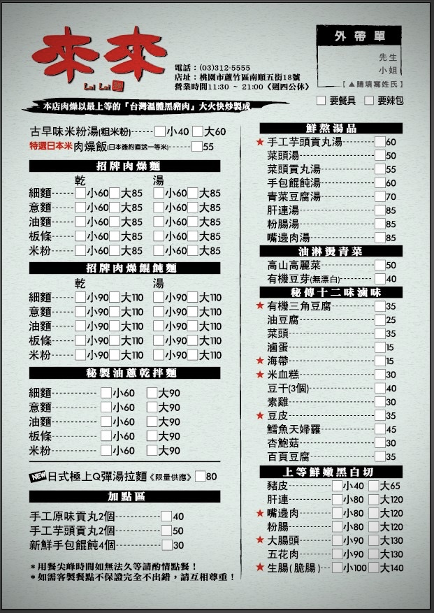 米粉 湯, 招牌乾麵, 滷味小菜, 自製辣椒