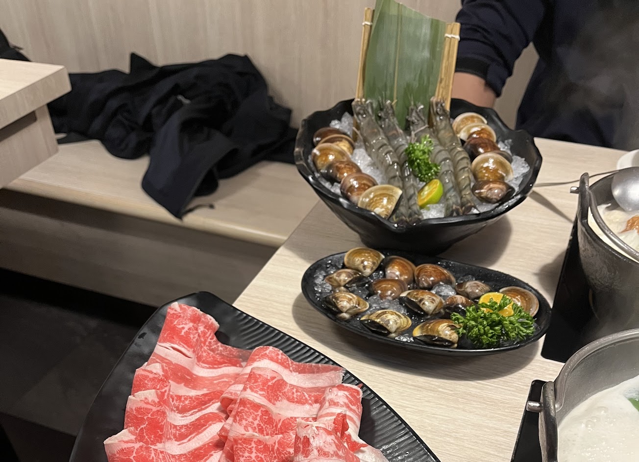 第一次用餐,湯底好多選擇,很多都想試試看,有蔬食自助吧,蔬菜能開心吃,雪花牛份量滿意,另外一份霜降和牛也很美,環境乾淨整潔美觀,服務人員態度親切有禮,未來會繼續支持