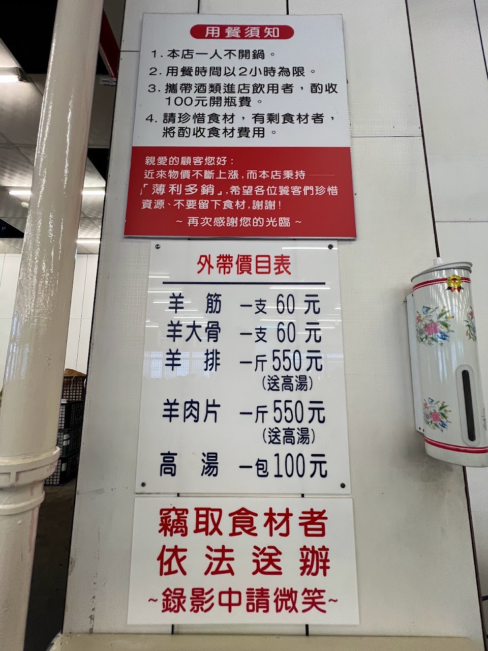 CP值是給五顆星的第一原因。 優點:停車場大,用餐空間大,價格合理350/人,五歲小孩酌收一百,三歲以下免費。最超值的是有羊膝與羊骨頭,羊肋排也不錯。蔬菜區非常新鮮好吃,雖然種類不多,但品質很好。 缺點:湯頭算中等,羊肉片是組合羊,可以省略不吃。 老闆會特意過來看你有沒有吃完,不要浪費。小孩的餐具請跟工作人員拿。