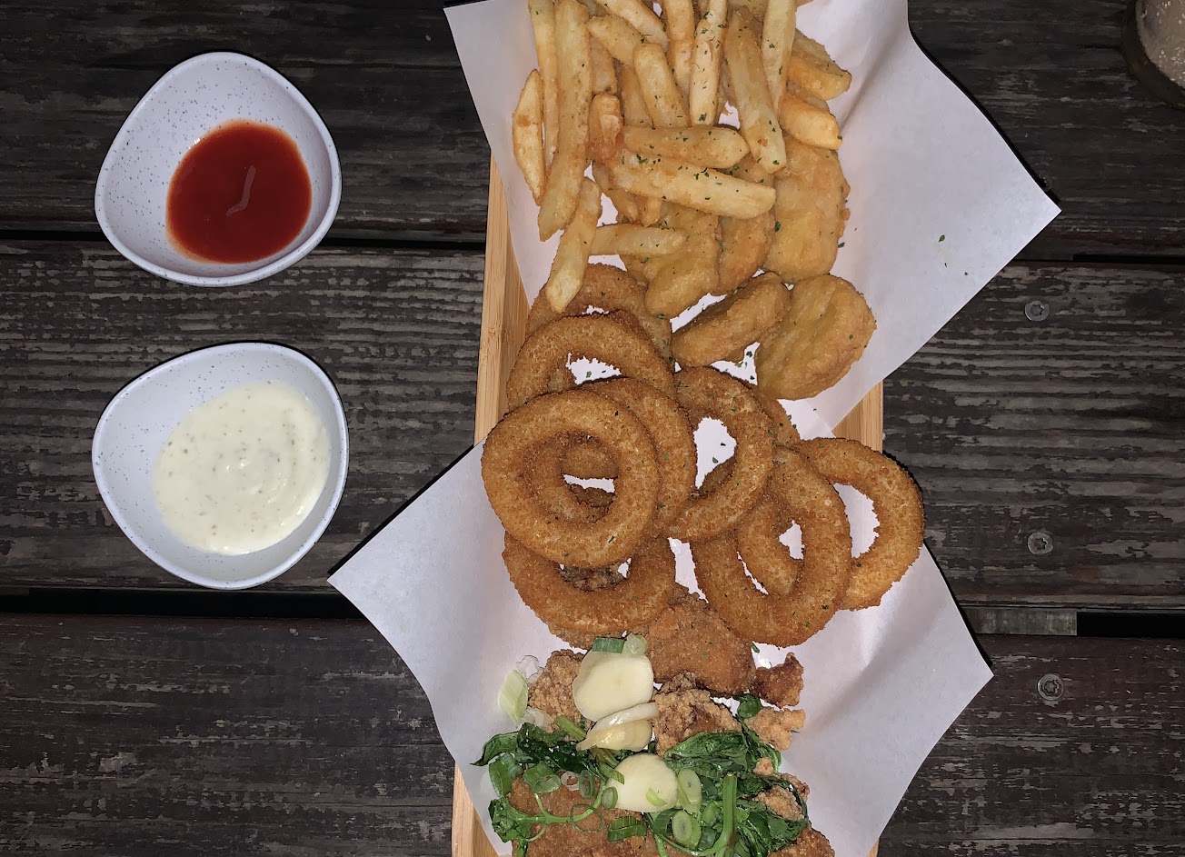 休閒放鬆,看夜景的好地方,炸物大集合份量很足夠?? …
