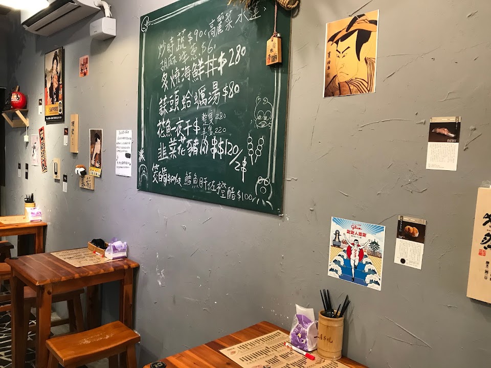 牆壁貼滿日式風格的圖片,軟殼蟹壽司好吃,出餐很快,期待下次再訪。