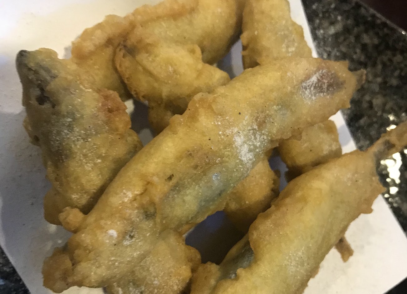 「喜相逢」是帶蛋的魚,很新鮮!炸過後還能噴汁,一點點胡椒鹽就讓人吃飽了還想一條接一條的啃。