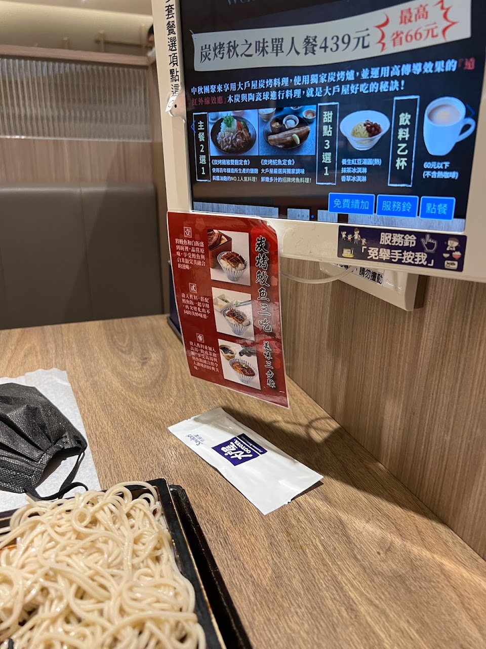 有平板點餐,定食可以續飯及味增湯,蕎麥麵很好吃,服務很好。