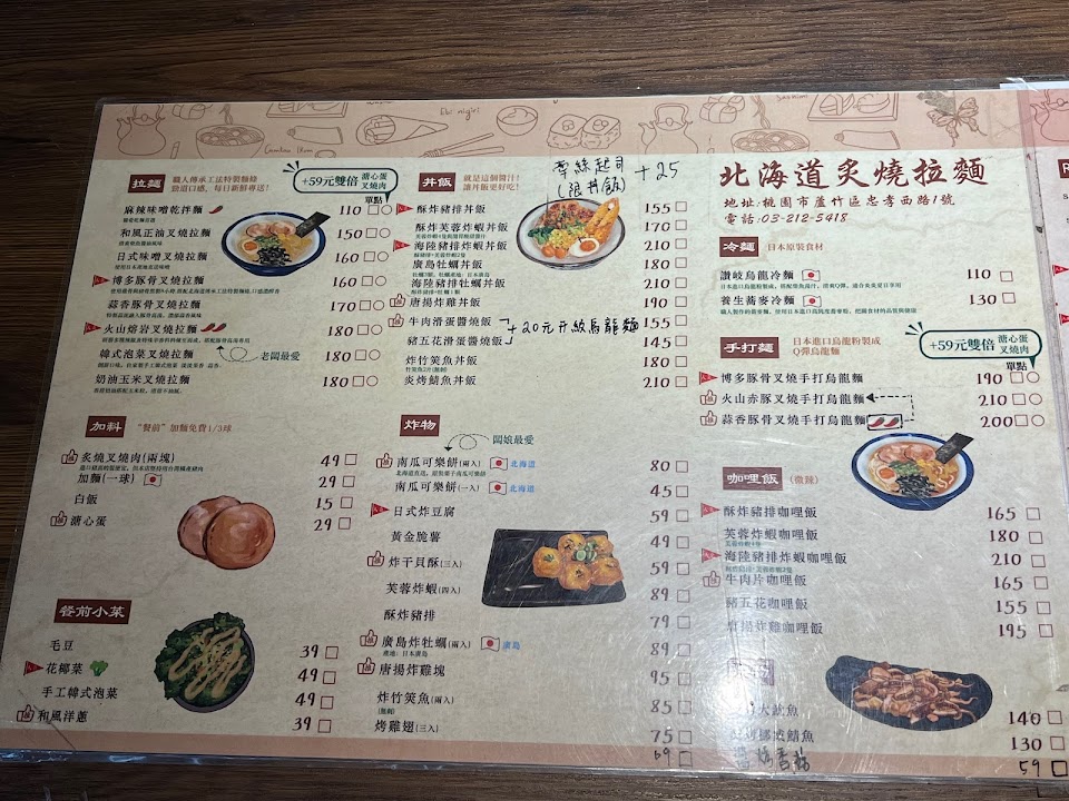 剛從北海道回來,路過看到招牌近來比較一下, 拉麵不會死鹹順口 ,加麵加價double(推 燒肉炙燒口感不錯 可惜肥肉的部分有點嚼勁了 鯖魚丼飯就還好,有點剛解凍進火爐的感覺 飯量也不多,食量大的可以再點個炸物 自助有味增、醋飲?