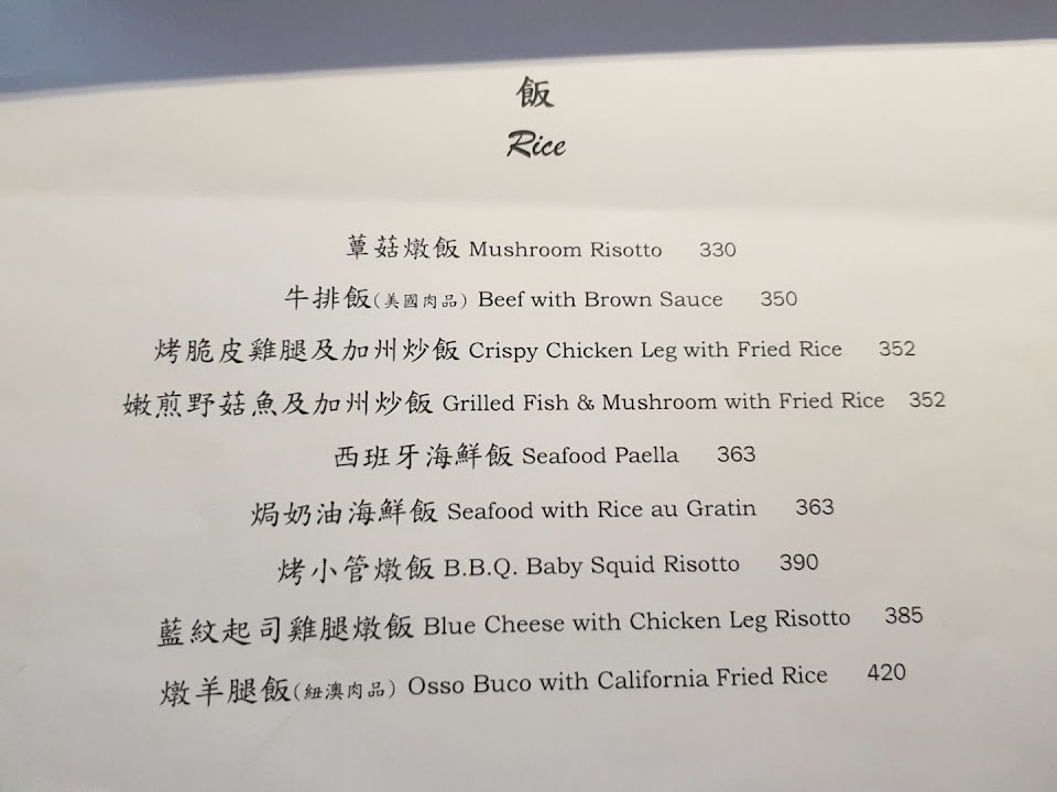 有燉飯,義大利麵,排餐,三明治,沙拉,飲料,兩種啤酒…還有各式蛋糕