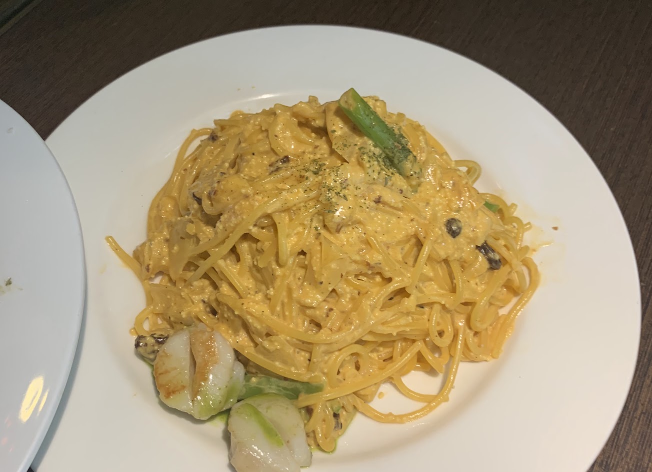 餐點份量足,義大利麵口感濃郁、非常到味,烤蘋果派超好吃,甜而不膩