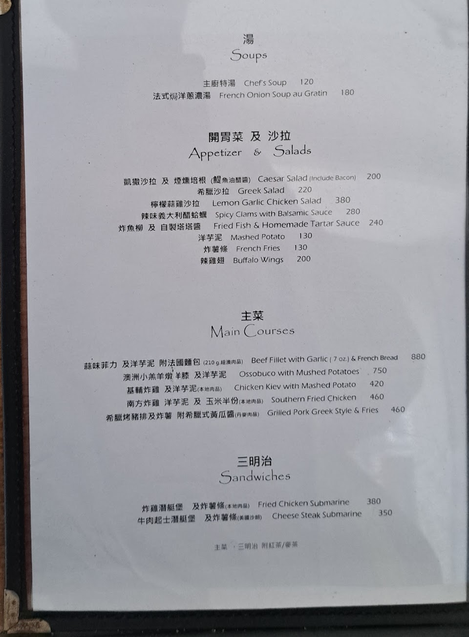 牛排說要5分熟,切開的第一看似是7分熟,雖然服務人員有問熟度是否可以,我當下認為應該是因為邊緣比較容易用的比較熟就沒說話,切到中間跟本是全熟牛排,還乾乾的,整個盤子都是油,很厚的油,也不知道是不是小弟見識少,第一次吃到整盤油的牛排,義大利麵條偏硬,海鮮也煮成乾的,辣雞翅也是乾的,整個傻眼,雖然聽到隔壁說著好吃好吃,我也只能看著桌上的料理無言以對,結果吃不下去就結帳離開了。