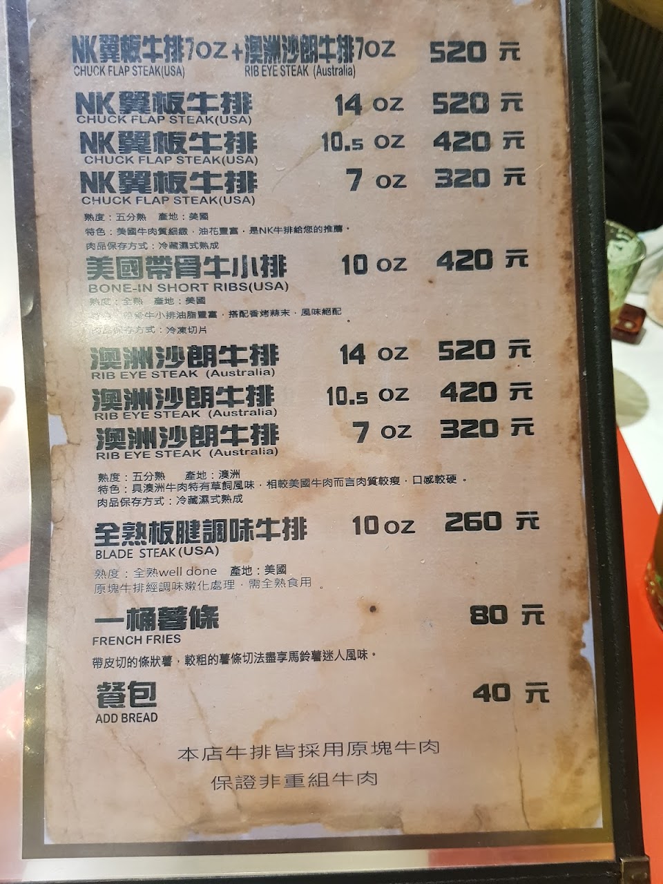 是我吃過最硬的牛排了。而且室內油煙很重,吃完身上超臭。這輩子不會來第二次!