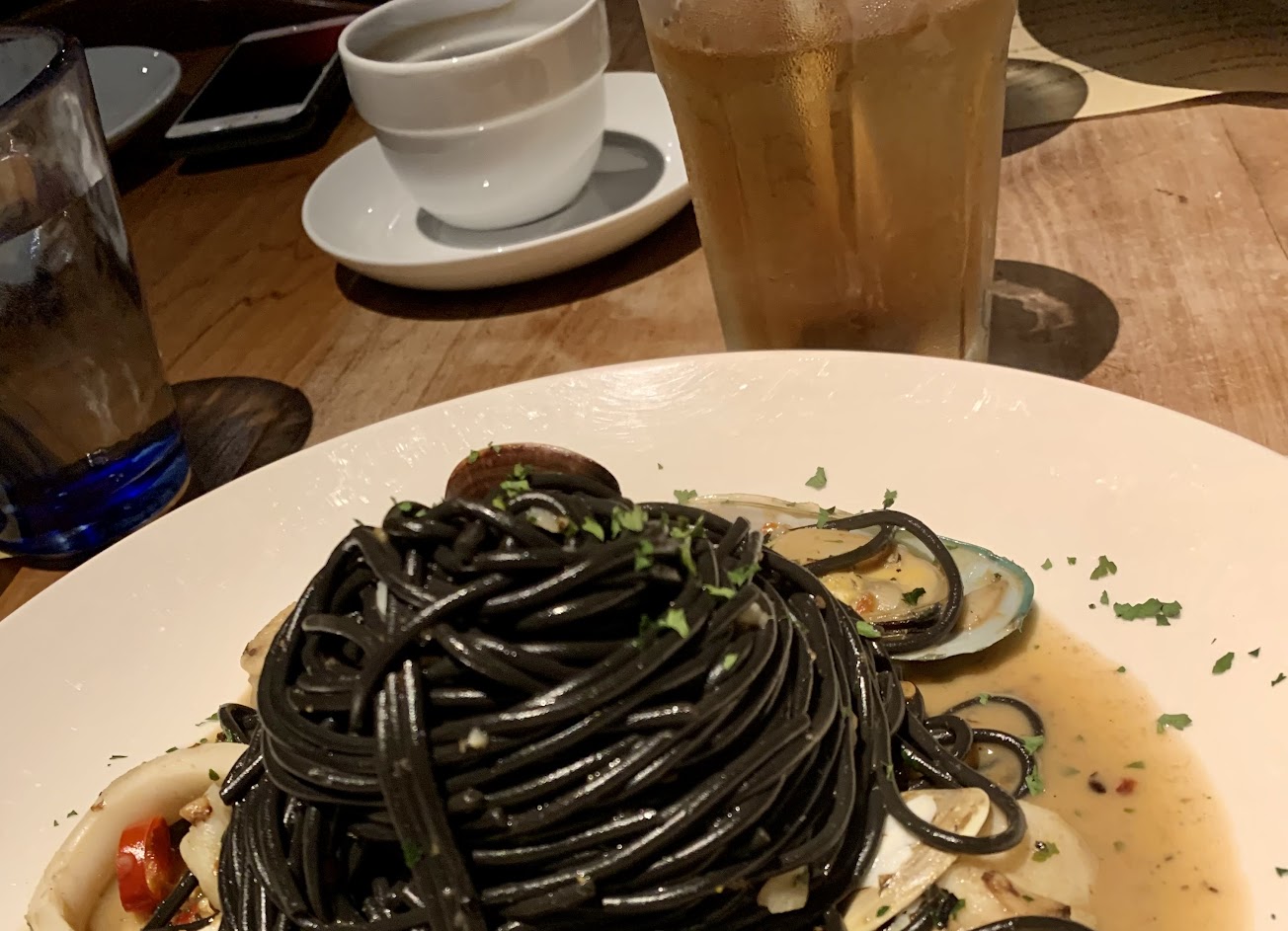 當天點了兩道義大利麵,剛入口覺得不錯,不過沒辦法吃完,量多(基本上就是麵很多,配料還好)且用餐畢後整個舌頭是麻的(我們完全沒有點任何辣味的食物,因此非辣到麻)
