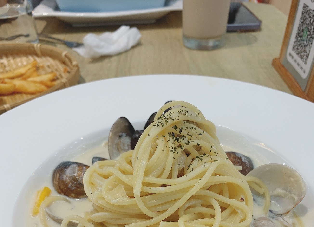 店裡氣氛很好,店員都很親切可愛❤️店門口對面就是停車場也非常方便~ 每道餐點都感受到老闆及老闆娘的用心!尤其是綜合香料蒜味蝦完全超驚艷!麵條及燉飯也都處理的很好不會吃起來太軟爛的那種! 出餐速度也很快還有商業午餐的方案,很適合當上班族中午的小確幸! 不論是帶小朋友來或是姐妹朋友聚餐都非常適合~