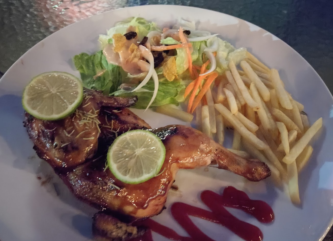 食物真的不ok⋯ 烤雞520元,非常不好吃? 上面薯條是冰的⋯⋯