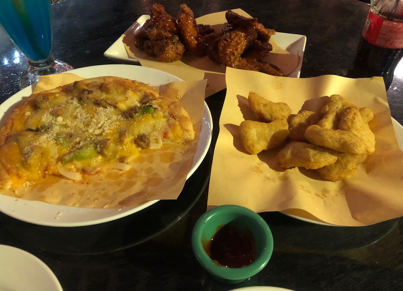 從去年就一直想前往的地點,直到今年才實現… 到實地後,確實如想像中的充滿著濃濃的美式元素在,遊戲台、吧檯、柵欄等之類(雖然我沒去玩…)。但駐唱的感覺則較偏向民歌餐廳,大概是此中比較有趣的反差點吧(自己幻想中的美式會比較有那種奔放不羈,拿把吉他唱起Indie/Folk類的老式音樂之類)。餐點部分,主餐其實沒什麼記憶點,反倒是點心中的起司條是個不錯的選擇。