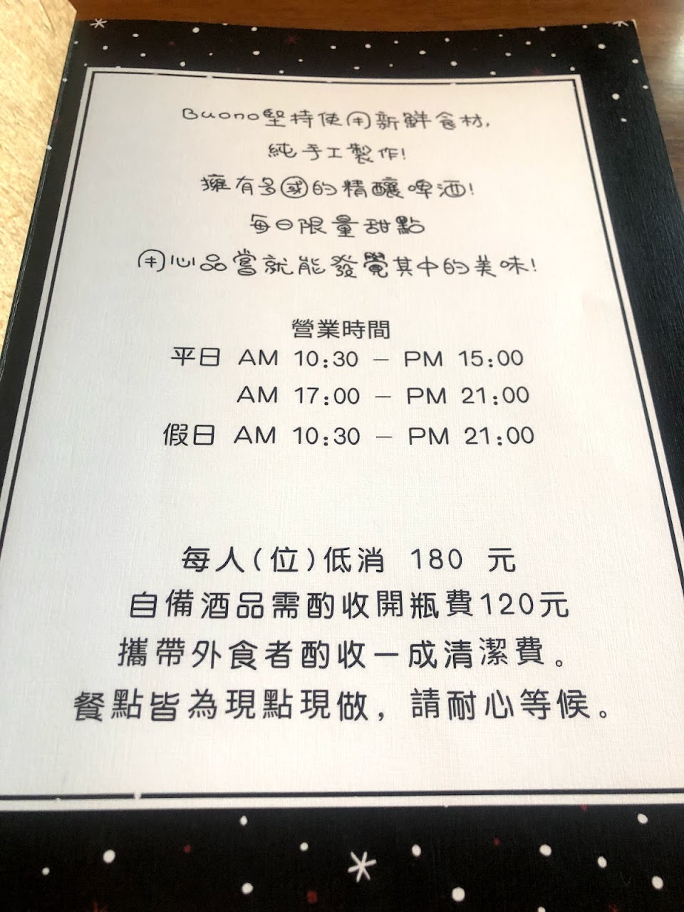 低消一個人居然要180元,限時2小時,建議肚子餓可以人可點2種就超過了,不然單純要喝咖啡口人就要想一下了,會像我一樣默默走出去