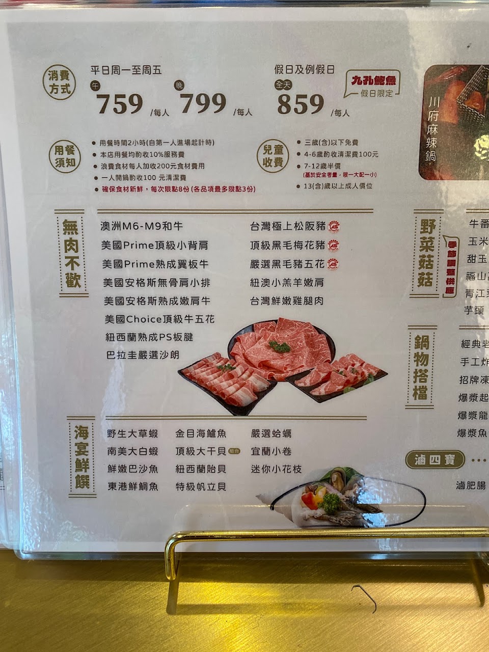 我不吃牛,豬肉肉品多半都是組合肉,能吃的剩下一兩種,其餘的火鍋料品質也不是好的,沙拉吧和調味料種類,以此價位來說是遠遠不及格的,整體品質配不上這個收費,簡單來說,大不推!