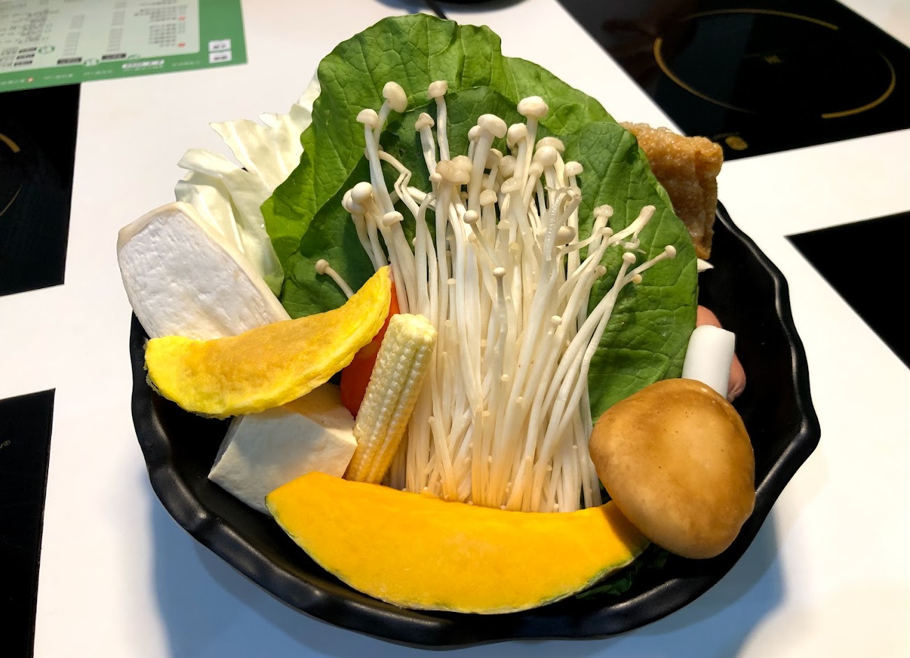 菜盤份量很足,菜洗得很乾淨吃起來很安心,切的肉片有厚度,不是薄薄一夾就破的那種,口感很好,打卡活動還送海鮮拼盤簡直太划算