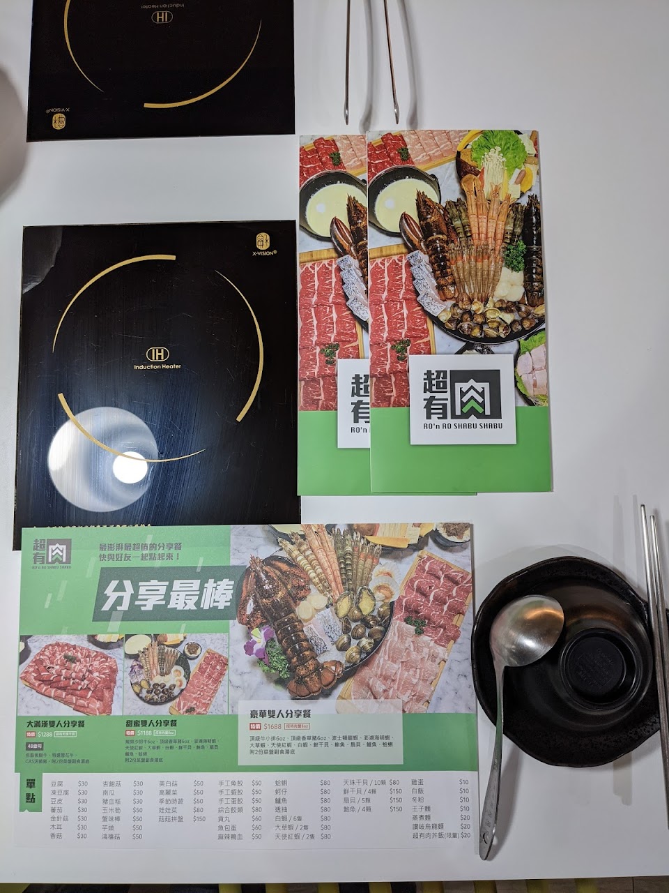 餐點:其一上比較慢,其二鍋底味道淡(點了個酸白菜鍋跟昆布鍋底),但菜盤可以火鍋料換菜,量也足,在沒有肉的請況下可以吃8分飽,菜盤總類很多,加分。