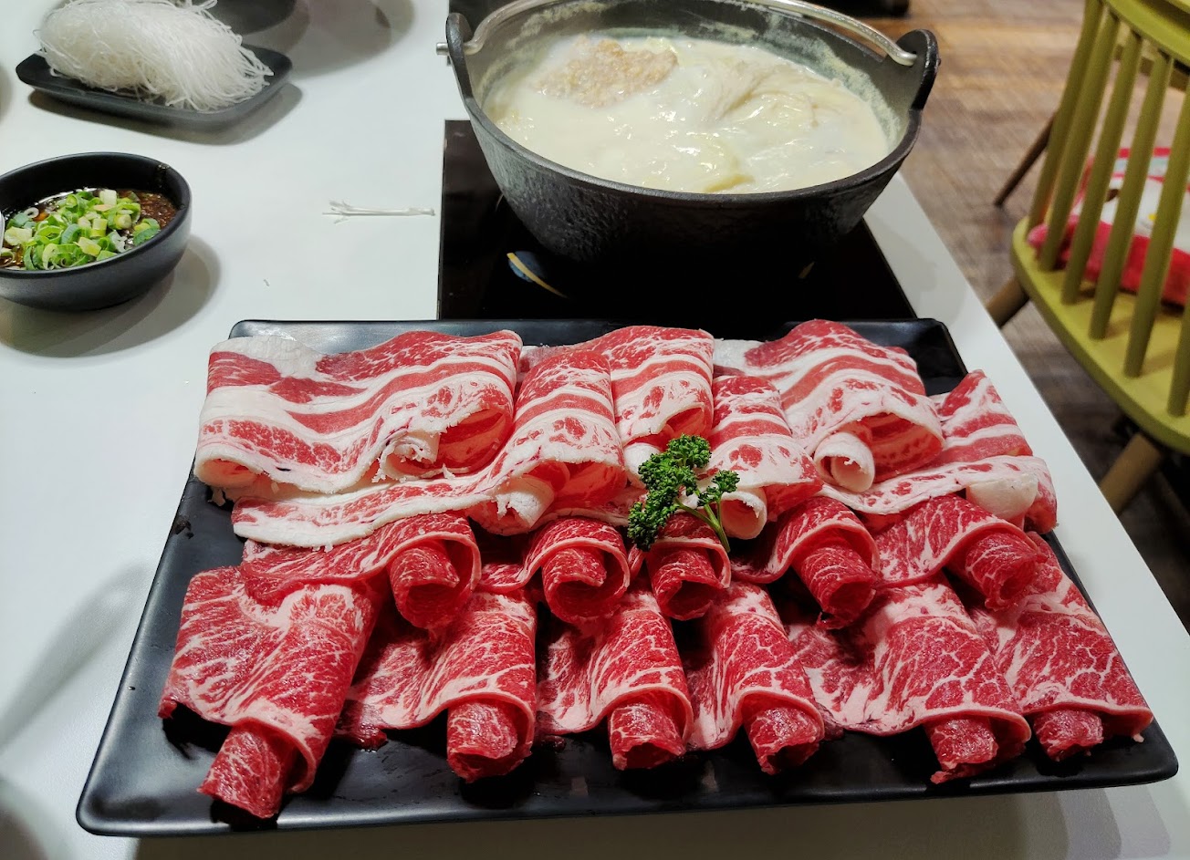 點了牛奶板腱牛肉和無骨雞腿排鍋和無敵海鮮鍋,牛奶味美味十足,牛肉也很多海鮮也很鮮美