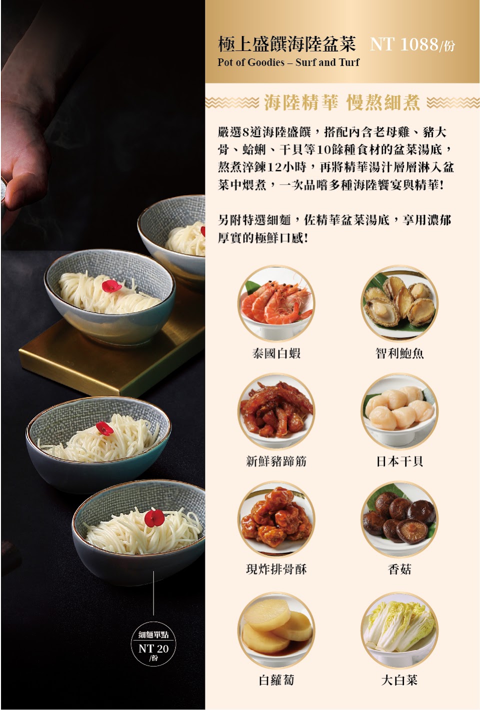 多種食材慢火熬煮的湯頭,