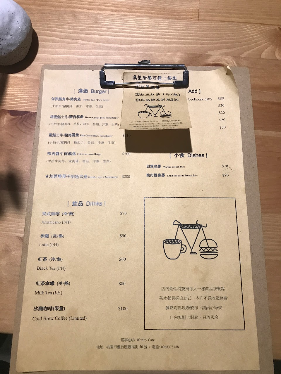 個性店坐鎮一位超有型的平頭鬍子老闆 帥! menu餐點很美式 漢堡/熱狗堡/早餐 一人作業的小廚房兼吧台兼櫃檯