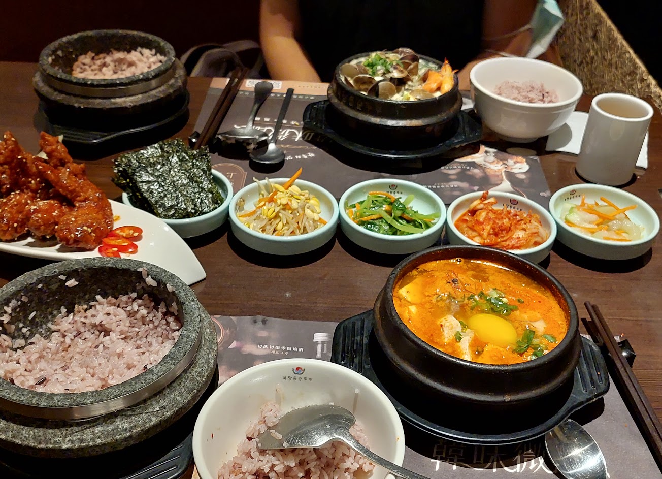 CP值低,海陸牛肉煲一般般,韓式石鍋飯太慢吃厚厚一層飯變硬,小菜免費續是唯一賣點