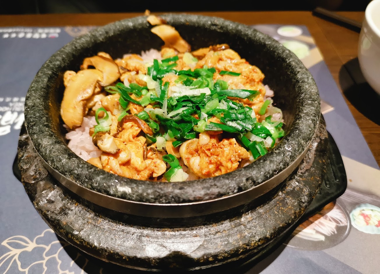 每一份豆腐煲都會配上一份韓式石鍋飯、一顆蛋,飯還蠻Q彈,份量也不少,如果喜歡吃鍋巴,可以先不要翻動石鍋飯,放到最後再淋上麥茶,就是茶泡鍋巴飯啦!