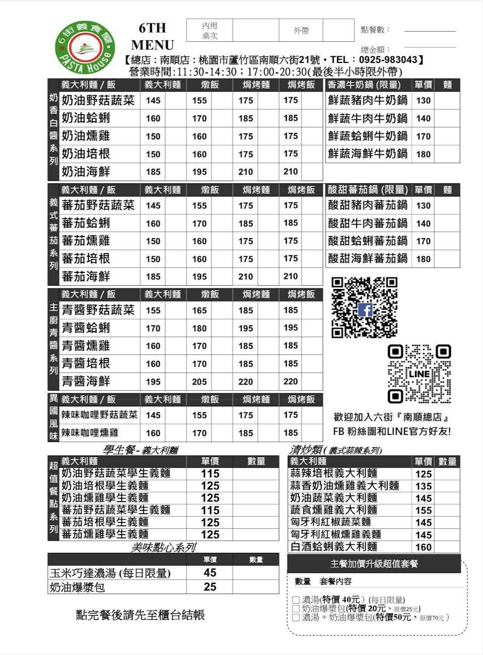 2024最新在地推薦餐廳的菜單_6街義食屋Pasta House 南順總店的菜單、圖片