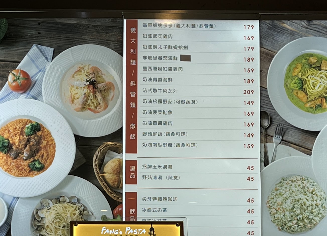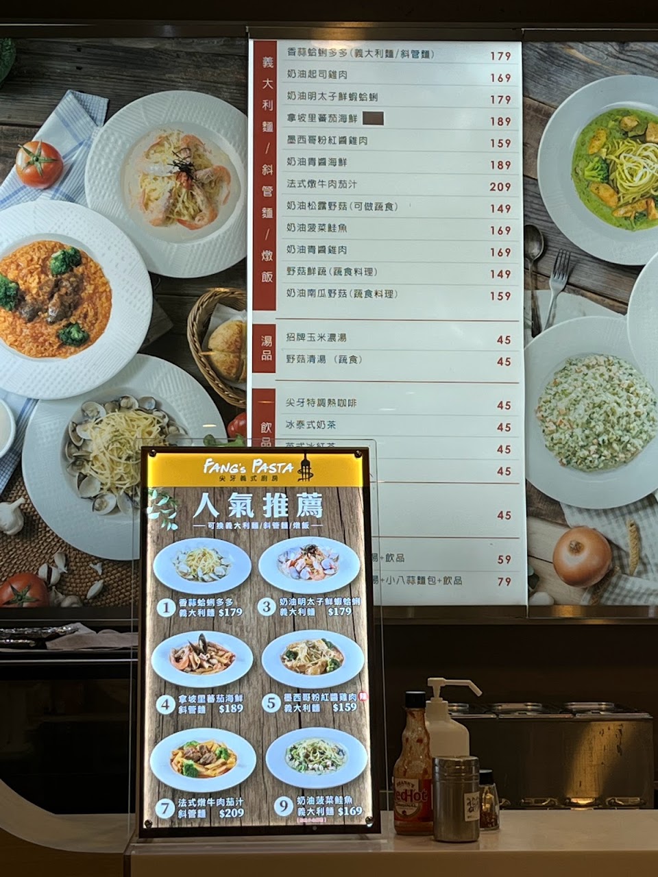 我覺得玉米濃湯熱呼呼好喝,義大利麵份量跟配料夠,週末等不及台茂餐廳,可考慮這間,價位符合餐點條件。