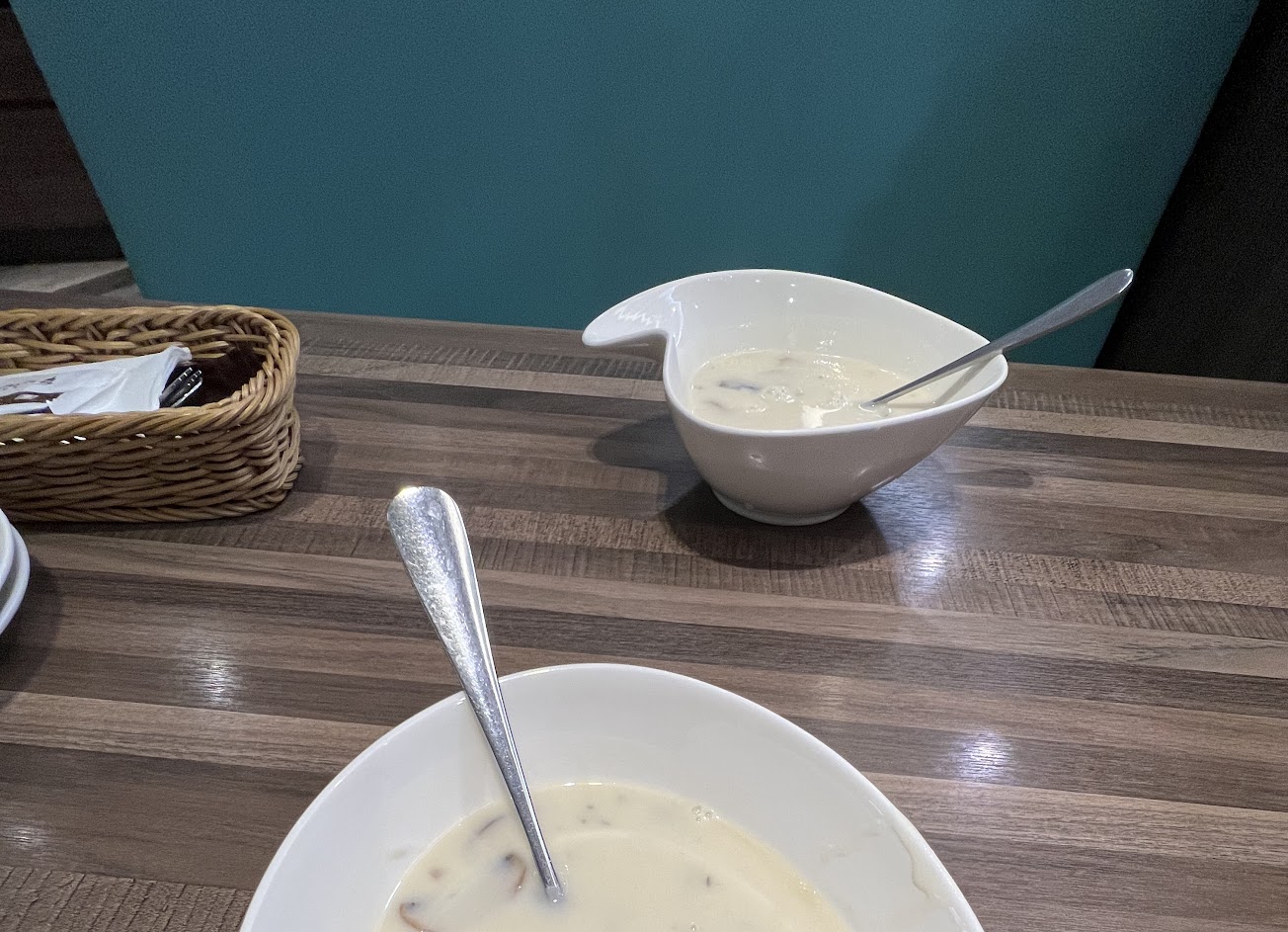 湯品我們選主廚濃湯,經典小食點甜醋鴨胸,皮很肥。豪華主餐選擇西班牙海鮮烤飯,同時把白飯換成白花椰米,結果感覺好鹹;排餐則是加價點德國豬腳佐肉腸。甜品我們選了招牌核桃派,甜而不膩,熱黑咖啡香醇順口,可以無限續杯,餐點中規中矩,沒有踩雷。