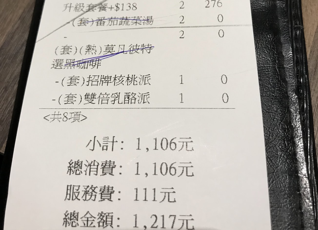 氣氛還不錯 餐點也好吃 不過主餐還沒上就有服務員來問要不要上甜點 然後吃到一半又再來問一次 快吃完又有人來問? …